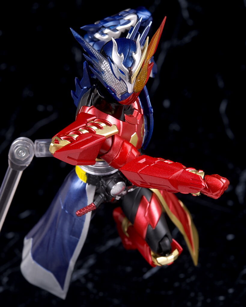 精巧な造形と綺麗なメタリック塗装は安定した完成度です。軟質素材の腰ローブは見た目よりも、クネクネ動くので股を開いたりキックポーズに対応できました。