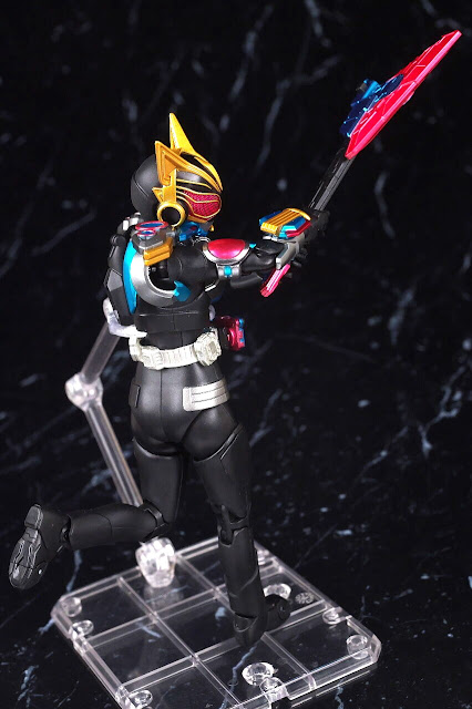女性ライダー特有の小柄なプロポーションが劇中のイメージ通りで、スピーカーなどの機械的な各アーマーは精巧に造型されています。メタリック塗装で美しく再現され、完成度の高い出来に仕上がっていました。